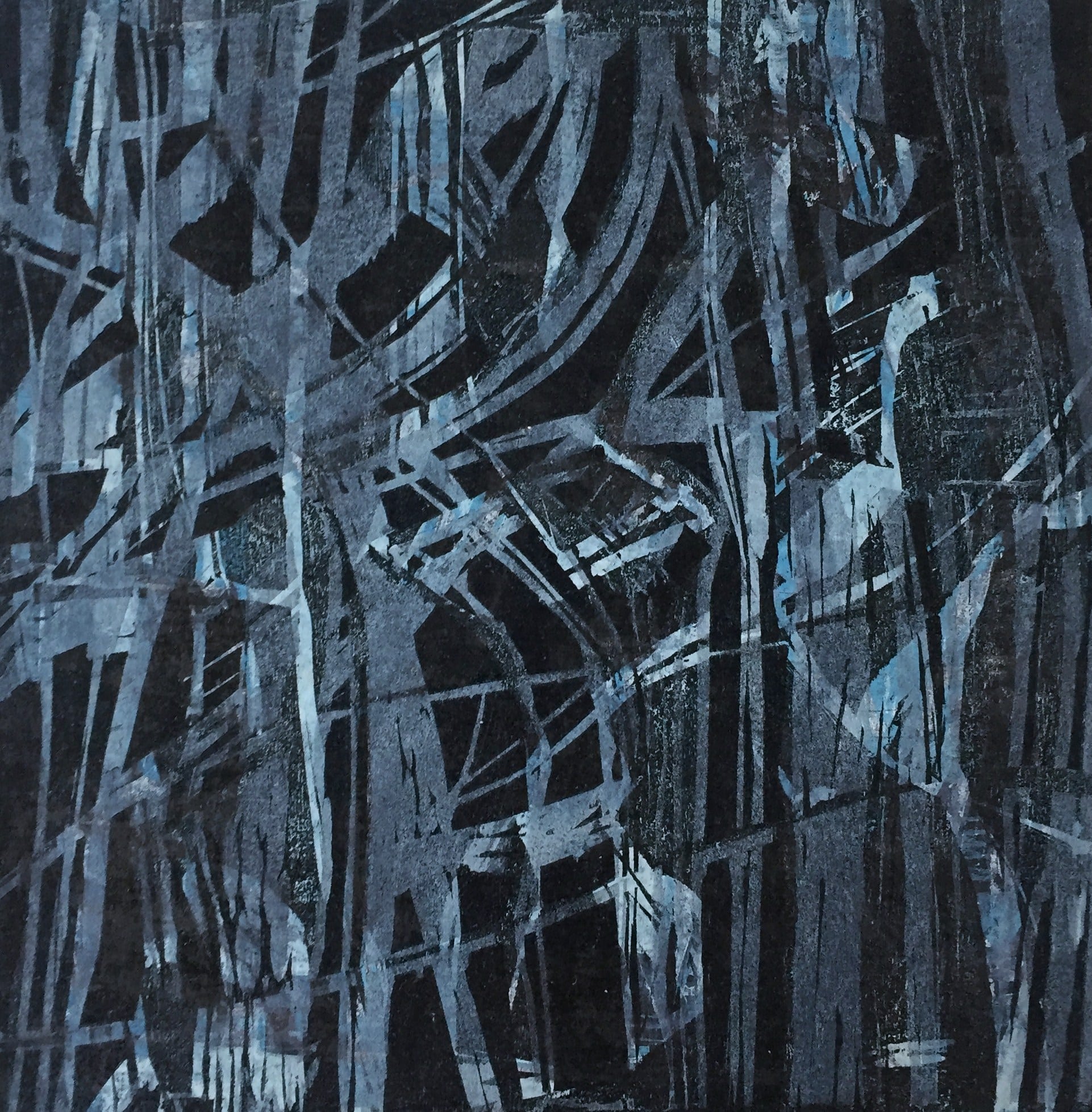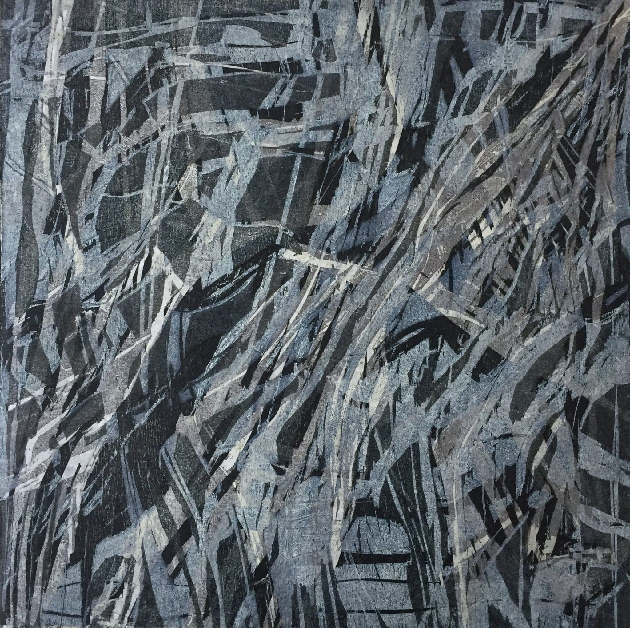 Gravure dite « bois perdu » gravée puis re-gravée sur la même plaque creusée au fur et à mesure des encrages par superpositions.