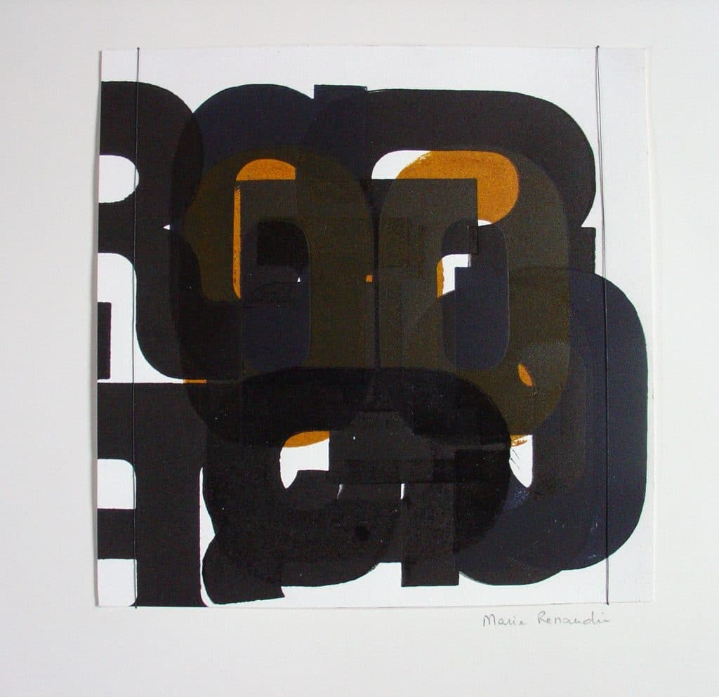 Je construis un univers visuel abstrait à partir des formes des caractères, je crée une surface dans laquelle je cherche les résonances entre la lettre elle même, le blanc du papier et les couleurs des encres.