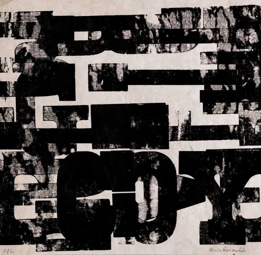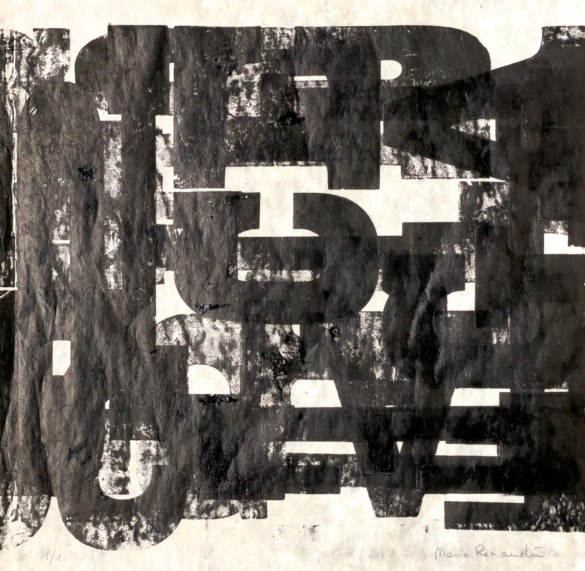 Pour ces estampes, je travaille à partir de caractères à affiche anciens en bois et les utilise par superpositions.