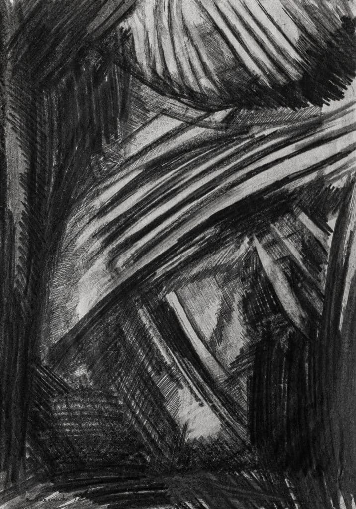Inspiré par les écorces d’arbres ces dessins sont réalisés à la mine de plomb et à la gomme.