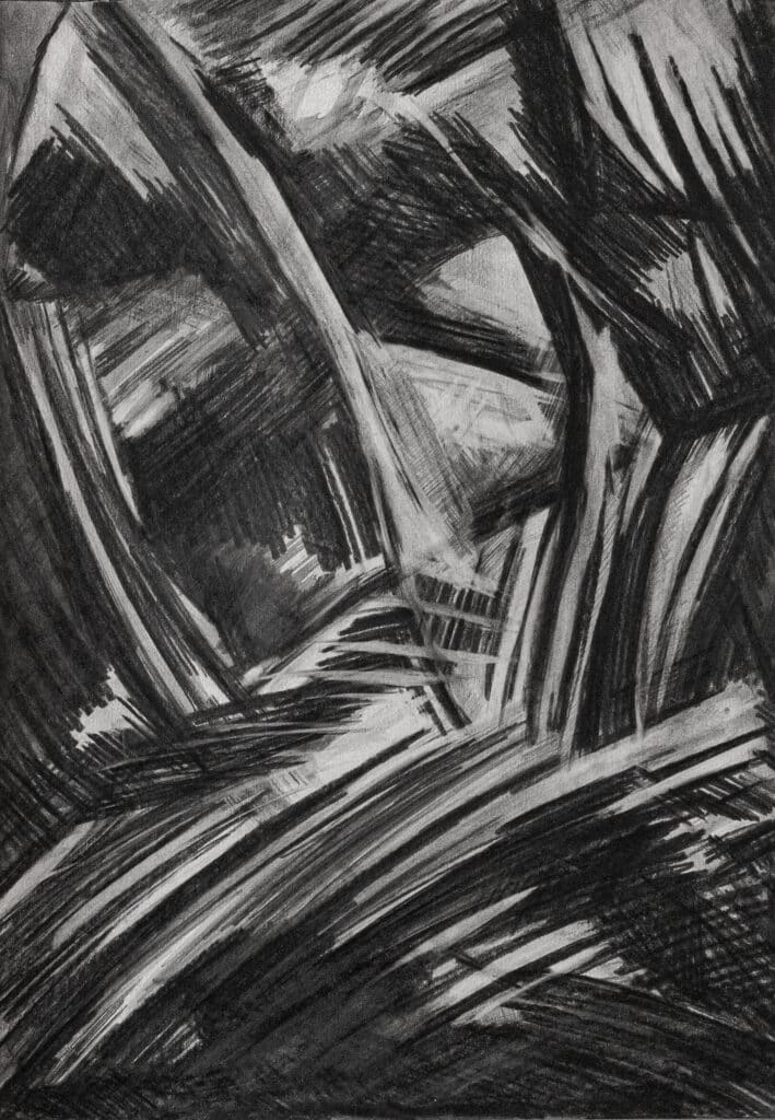 Inspiré par les écorces d’arbres ces dessins sont réalisés à la mine de plomb et à la gomme.