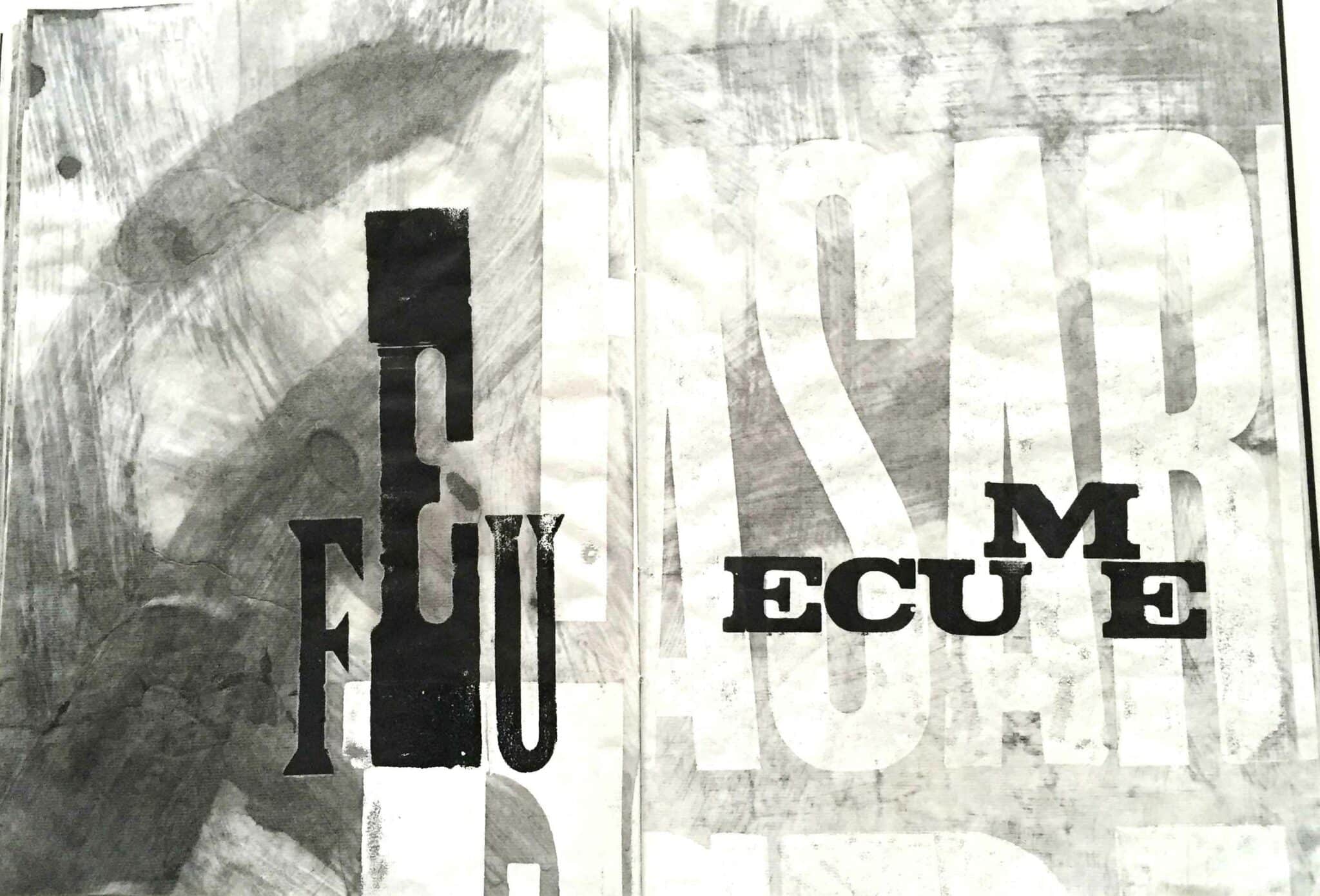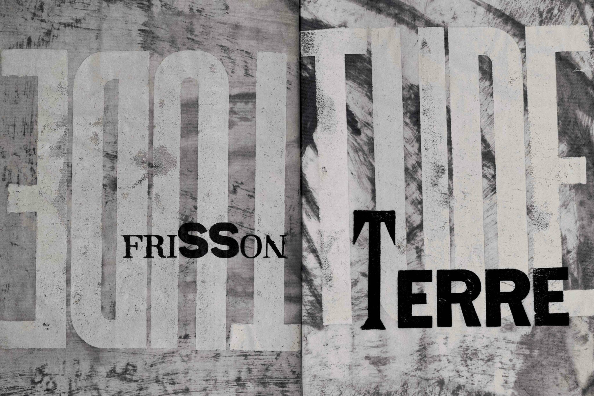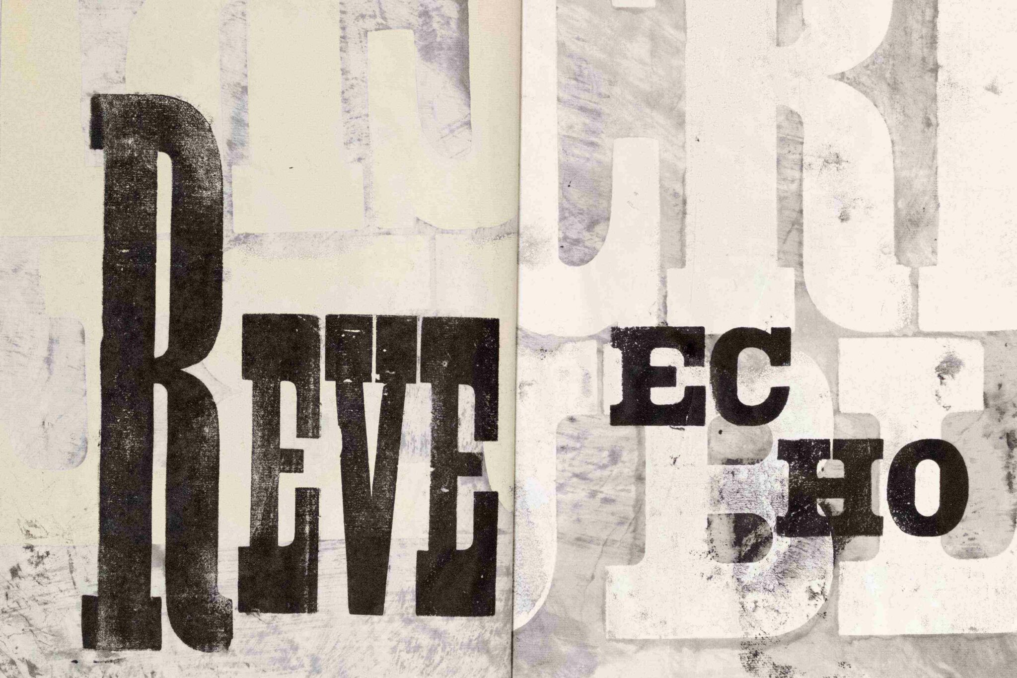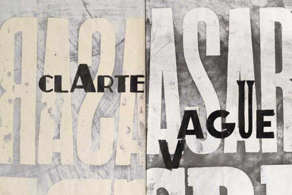 Composition typographique à partir de bois d’affiche (lettres d’imprimerie en bois). et peinture acrylique pour les fonds.