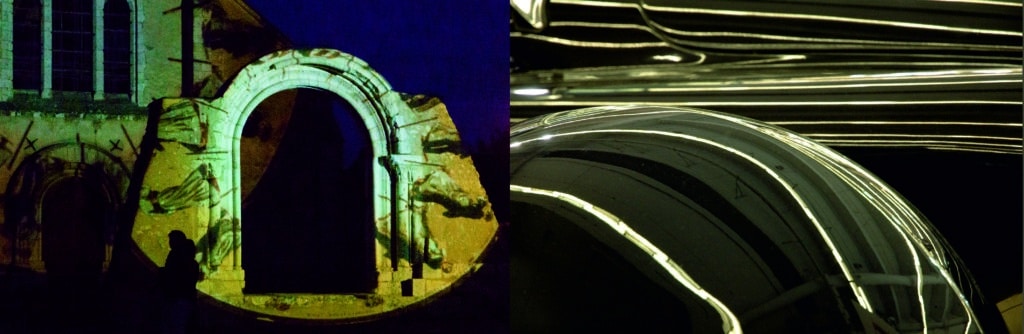 Cette série « Associations improbables » résulte de l’assemblage de photos provenant de mes séries : « Lumières dans la ville à Chartres » et « Reflets et carrosseries ».