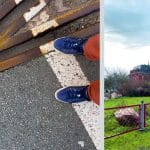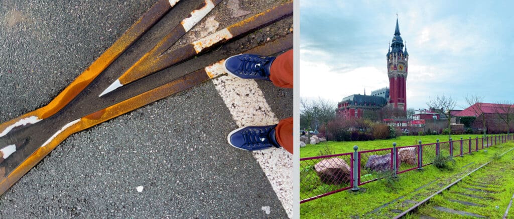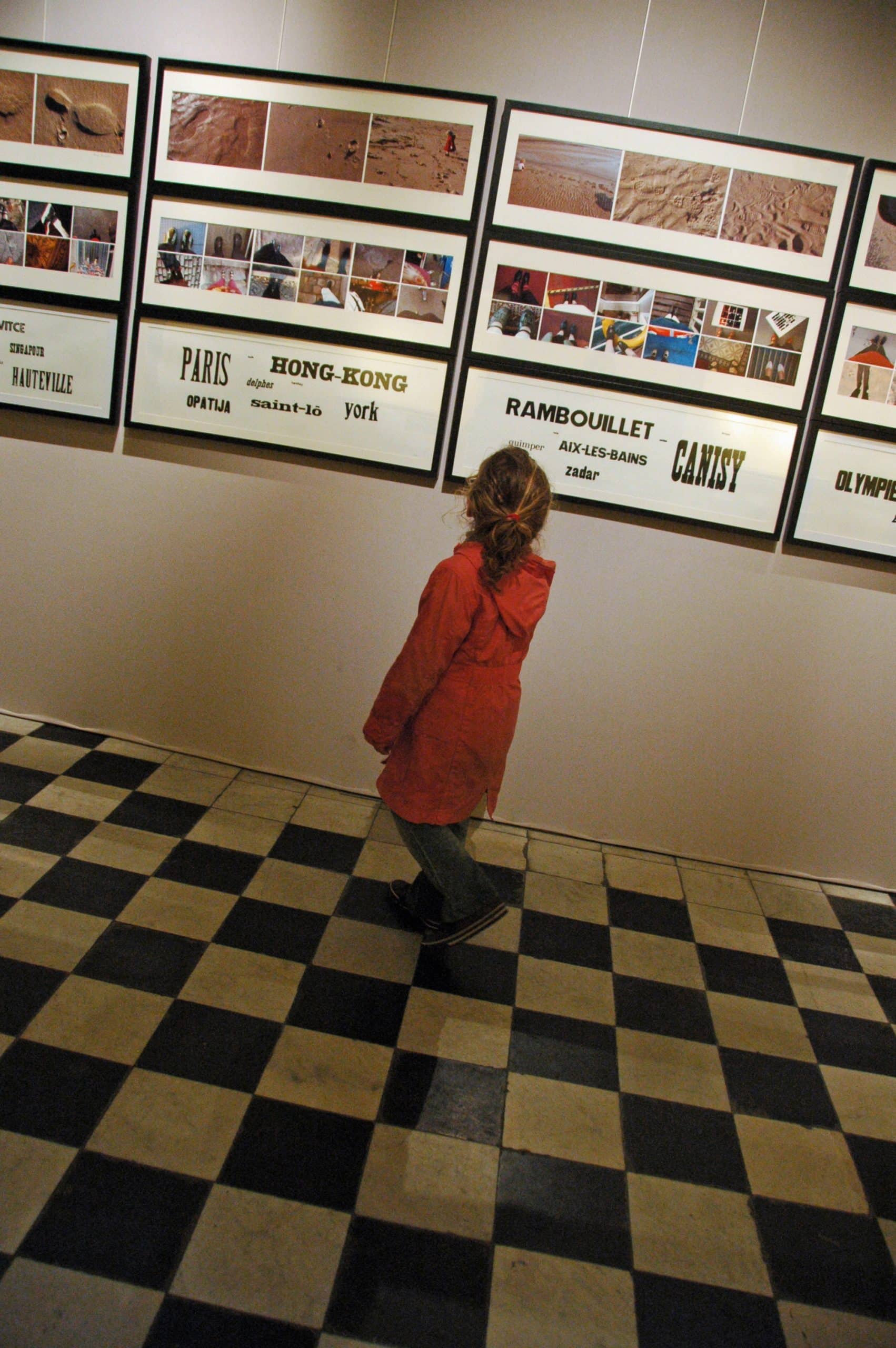 Cette série « Marcher dans la ville » résulte de l’assemblage de photos du lieu où a été prise la photo de mes chaussures sur les divers sols des villes.